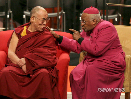 데스몬드 투투 대주교와 만나는 달라이 라마